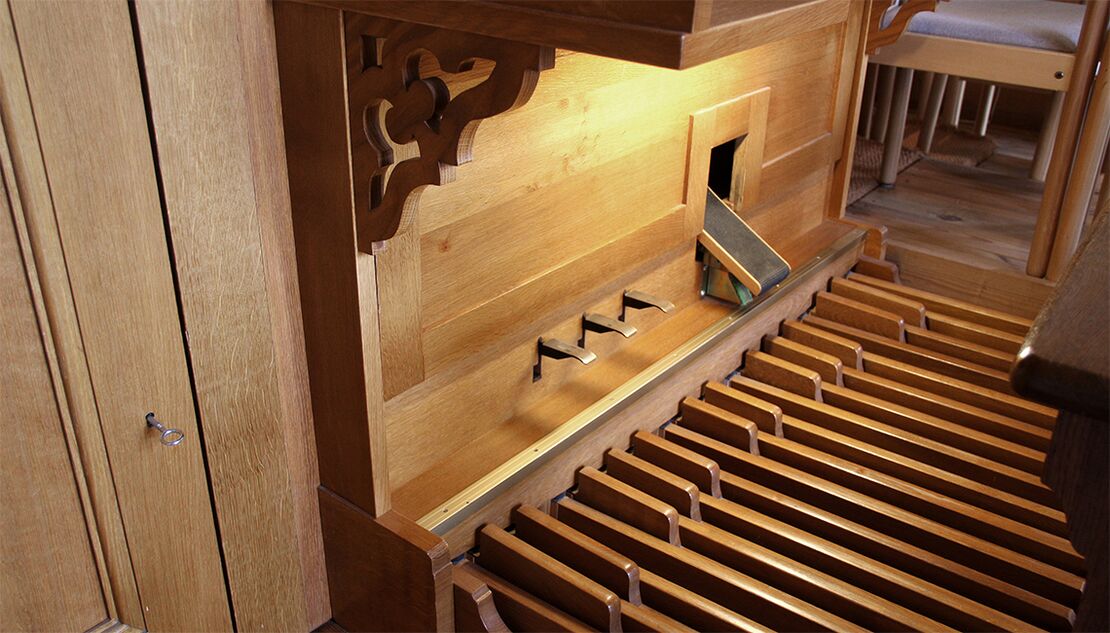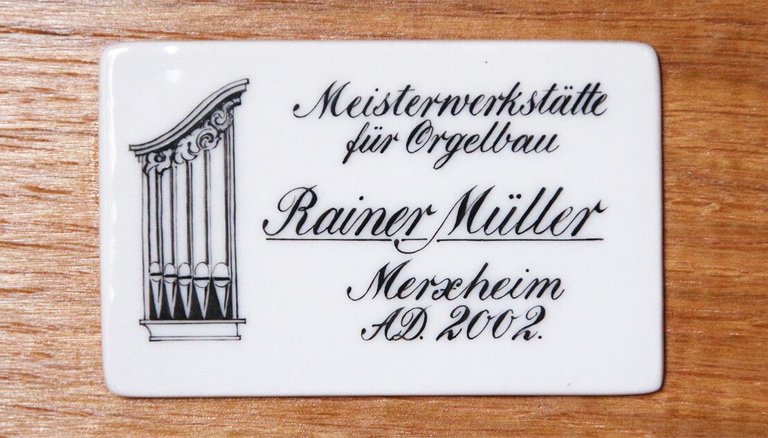 Neubau 2002 (II+P, 22) Orgelbau Rainer Müller; vollmechanische Schleifladenorgel