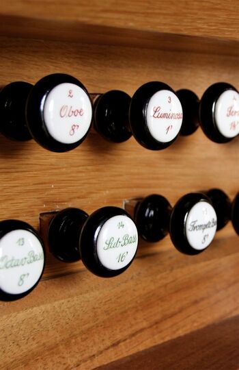 Das Hauptwerk enthält den klassischen Prinzipalaufbau sowie einen Grundbestand zusätzlicher Stimmen, das Schwellwerk neben den Registern eines zusammengestellten Kornetts mehrere Streicher und eine Zungenstimme; das Pedal ist mit tragenden bzw. hervortretenden Bassregistern besetzt.