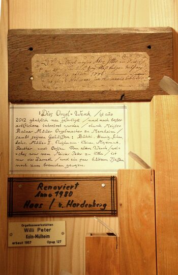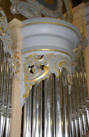Neubau 2012 (I+P, 13) Orgelbau Rainer Müller (Verwendung von Gehäuseornamenten des Vorgängerwerks)
