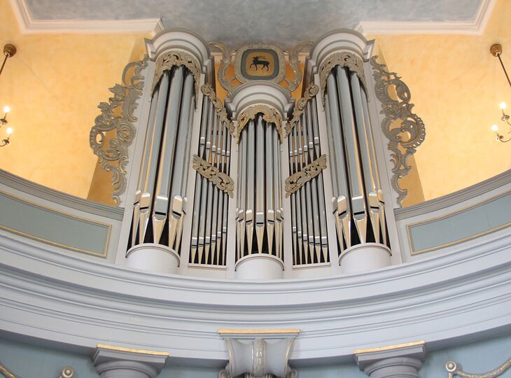 Hier wurde ein neobarockes Instrument (Willi Peter 1957, II+P, 8, steile Disposition) durch ein solches ersetzt, das sich an die klassizistische Orientierung des Kirchenraums und des laut Denkmalbehörde beizubehaltenden Gehäuses (1957) anlehnt. Von diesem handwerklich wie ästhetisch unzulänglichen Gehäuse wurden lediglich Schnitzwerk und Profilstücke der Rundtürme wiederverwendet, die Proportionen des neuen Gehäuses diesem Bestand angepasst.