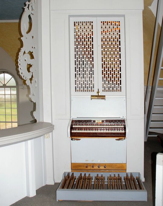 Die Besetzung des Pedals mit zwei Registern erlaubt dessen Einsatz bei bis zu mittelstarken Manualmischungen auch ohne Ankopplung; dabei ist der Gedacktbass derart gestaltet, dass er eine vollgültige Pedalstimme im Triospiel zu zeichnen vermag.
