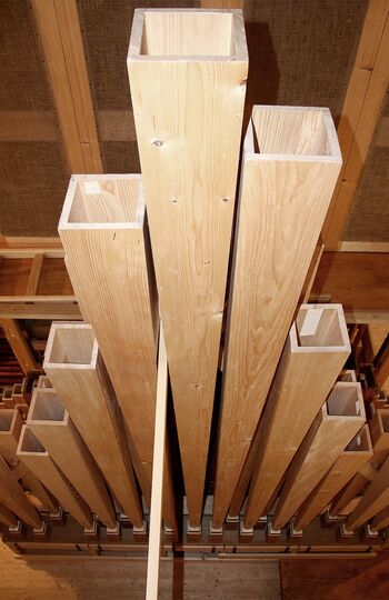 der Windkasten des Hauptwerks, einem Umbau des 19. Jh. entstammend, wurde erhalten, weitere Windkästen nach diesem Vorbild geschaffen