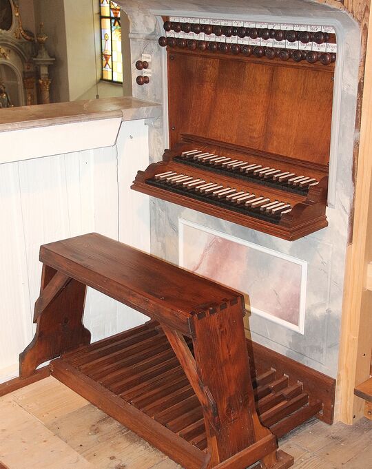 der Spielbereich wurde 2012 so angelegt, wie ihn J.Chr. Kohlhaaß wohl für ein zweimanualiges Werk verwirklicht hätte