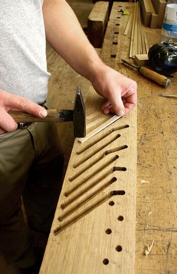 die Verwirklichung des Unterpositivs, 1769 angedacht, bedingte eine eigenwillige Konstruktion der Pedalmechanik (Werkstattbild)