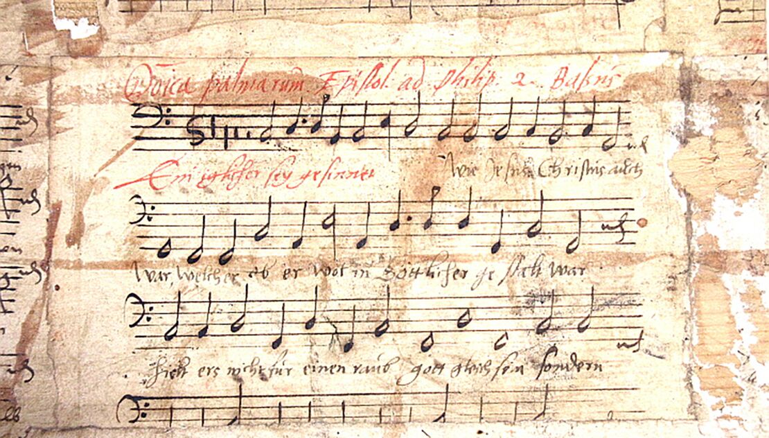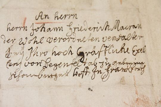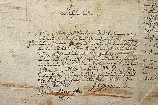 Brief aus Macranders Hand an seinen Bruder – die Jahreszahl 1732 könnte als Beleg eines späteren Baujahrs aufgefasst werden oder bei einer frühen Balgreparatur eingeleimt worden sein