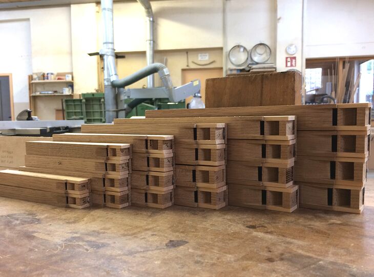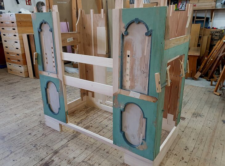 Schreinerische Rekonstruktion des Unterghäuses (Werkstattbild)