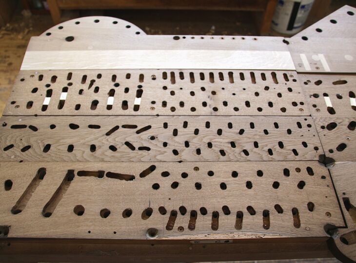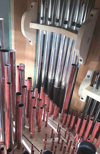 Momentaufnahme der Restaurierung der Pfeifenstöcke mit originalen und jüngeren Windführungen