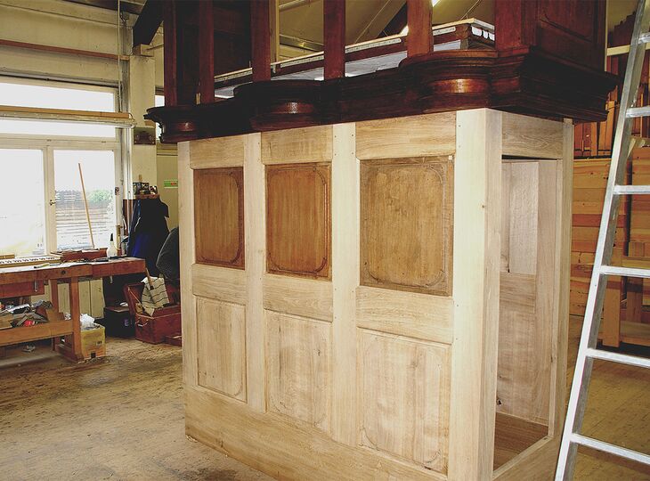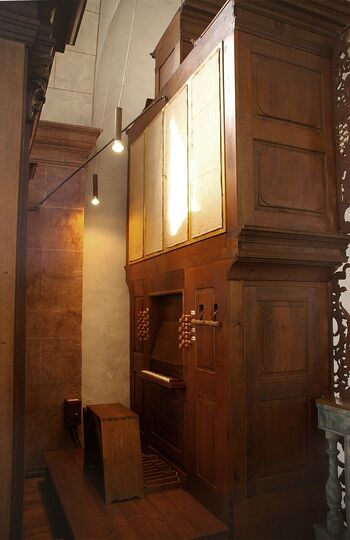 In den Jahren 2006/07 wurde das Instrument durch unsere Werkstatt mit hohem Rekonstruktionsanteil restauriert. Die Arbeiten umfassten nach Beseitigung späterer Zubauten die Rekonstruktion von Untergehäuse, Windversorgung, rückseitigem Spielbereich und Mechaniken, die konsequente Wiederherstellung der Windlade gemäß Erstzustand, den Wiederaufbau der Orgel am ursprünglichen Standort sowie nach Rückführung des Pfeifenwerks die Intonation im Sinne der Erbauer.
