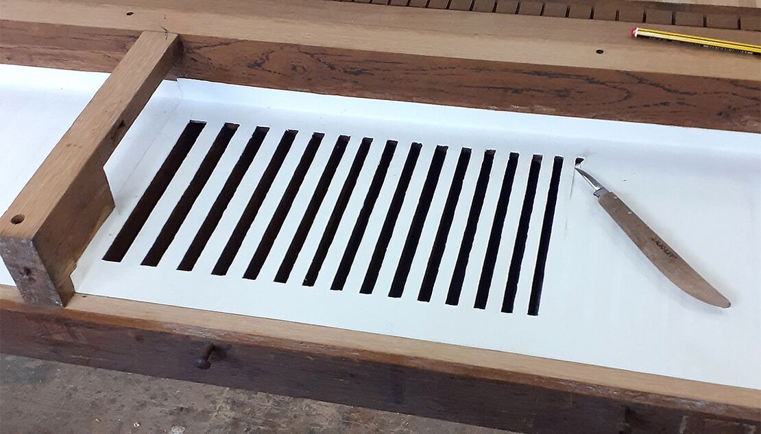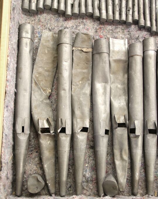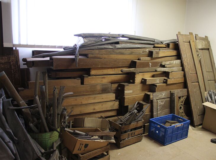 Eine Sichtung erhaltener Teile und Einlagerung (Druckerei Nilles) erfolgte 1990, die Bestandsaufnahme und Einlagerung seitens unserer Werkstatt 2013/14.