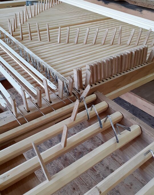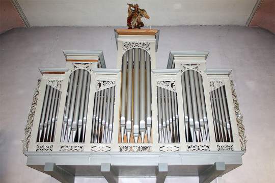 Das 1840 erbaute Orgelwerk der katholischen Kirche St. Clemens, Trittenheim - eines der reich besetzten zweimanualigen Instrumente seiner Bauzeit.