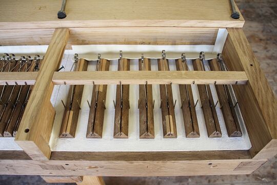 Bei Ausführung der Arbeiten wurde gewissenhaft der Erhalt Stummscher Substanz und die dauerhafte Funktionssicherheit priorisiert, sowie in detailgetreuer Kleinarbeit das Instrument bei Verwendung und Schonung aller originaler Teile überarbeitet. Hinter uns liegt eine Zeit intensiver Arbeit und Forschung, die uns die Vorgehensweise der Erbauerwerkstatt, trotz aller bisheriger Erfahrungen, ein Stück nähergebracht hat.